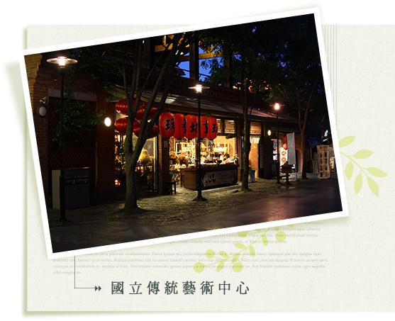 | 國立傳統藝術中心,位於臺灣宜蘭縣五結鄉冬山河畔,主要任務為統籌、規劃、推動傳統藝術的調查、保存、傳習及推廣工作;園區開放參觀,已成為宜蘭縣的觀光景點,園區佔地24公頃,園區展示系統開放收費參 觀,分為「動態」和「靜態」兩大類。動態展示是以園區內市街聚落區以及水岸的露天舞台、田園景觀區等為主,定時會舉辦不同的技藝展演活動,靜態展示則以展示館的傳統工藝美術與戲劇館文物陳列室的音樂戲曲相關文物之展示為核心。另結合許多特色商店,販售地方名特產、工藝品等。園區與冬山河親水公園間另闢有無污染環保電動船來往。 |